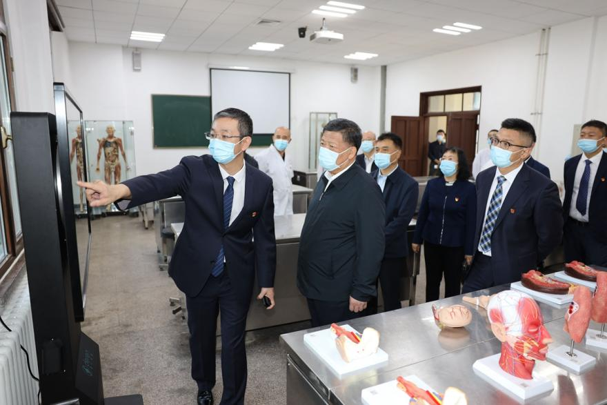 姜治莹走进虚拟仿真实验室、解剖教研室3D虚拟、大体塑化标本和智慧实验室筹建现场,听取关于实验室建设背景、研究方向、科研进展、发展规划等情况介绍,对实验室通过信息化手段,提高实验操作互动性,提升实验室智慧化教学水平给予肯定。姜治莹表示,医学学科是支撑国家经济社会发展的重要学科,是学校“双一流”建设的重要组成部分,希望大家始终心怀“国之大者”,乘势而上,主动作为,提高金沙2004路线js5医学学科的影响力,为学院和学校建设作出新的更大贡献。
