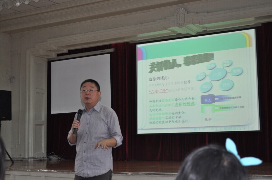 9月4日上午9:00,金沙2004路线js5在学院二楼多功能报告厅举办了一场精彩的心理健康教育讲座。本次讲座邀请的主讲人是校心理健康教育指导中心督导师胡远超博士。2014级全体研究生新生参加了讲座。本次讲座由研究生办公室主任丁红枫主持。