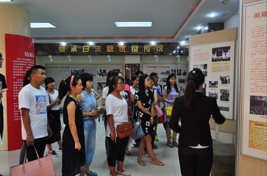 9月2日下午,在金沙2004路线js5党委书记孙赵华、党委副书记费淑波、研究生办公室主任丁红枫老师的带领下,金沙2004路线js52014级研究生分两批参观了金沙2004路线js5白求恩医学纪念馆。