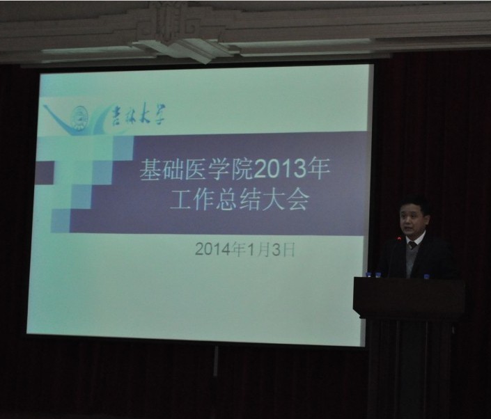 2014年1月3日下午,金沙2004路线js5在二楼报告厅召开了2013年工作总结大会。金沙2004路线js5副校长兼白求恩医学部学部长王冠军、白求恩医学部常务副学部长李凡、党工委常务副书记高继成、副学部长徐红、副学部长兼医院管理办公室主任高占东、党工委副书记兼纪工委书记屈英和等出席会议,学院全体教职工和研究生代表参加大会。会议由学院党委书记孙赵华主持。