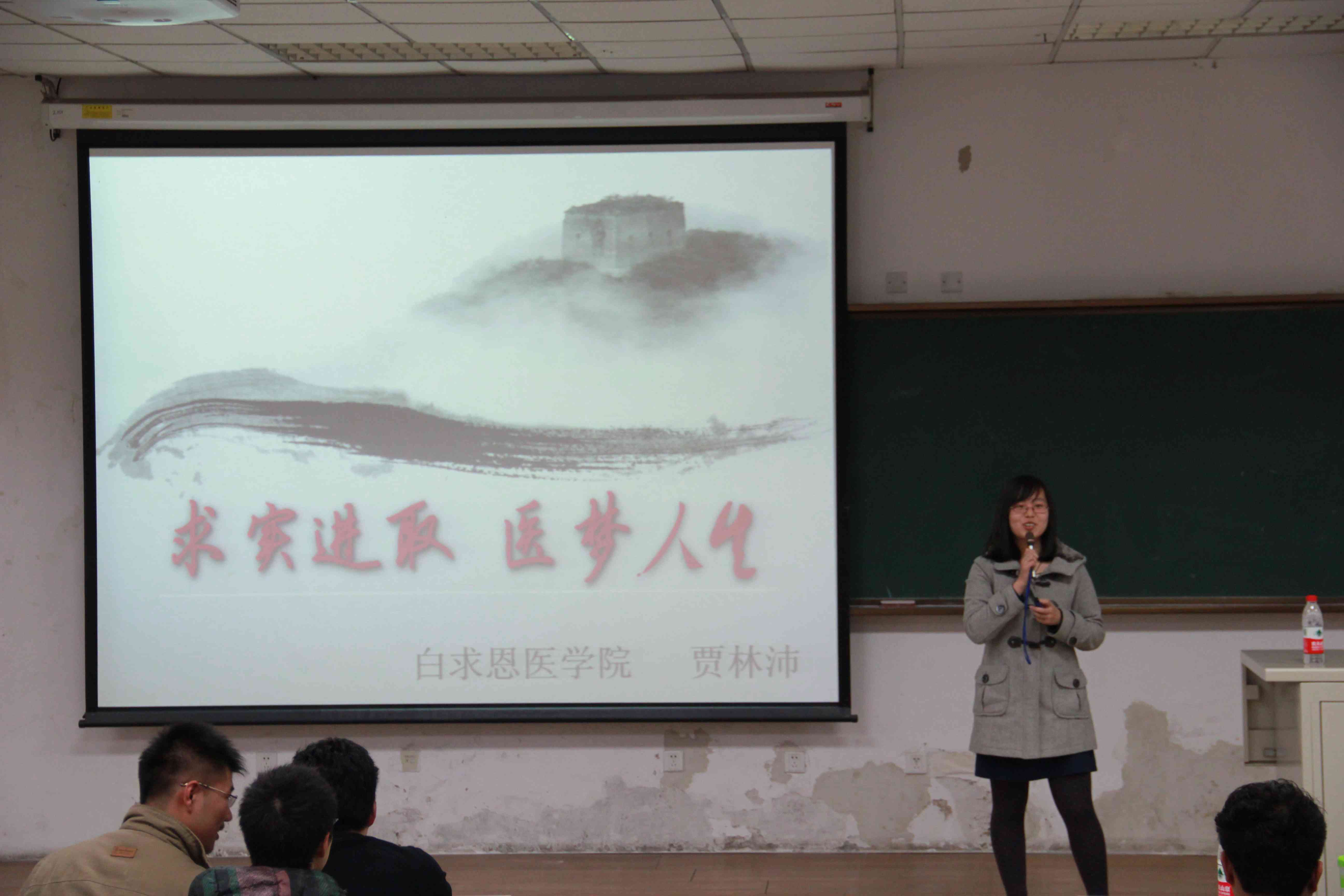 本次讲座的主题是“求实进取,医梦人生”。首先,贾林沛针对医学生今后将要面对的各项问题提出了个人见解。随后,她通过PPT的形式从学习、科研、学生活动、社会实践等四个方面向同学们分享了她的经验,并结合自身经历提出了许多建议。最后,团委第二副书记刘相良对本次讲座进行了总结。