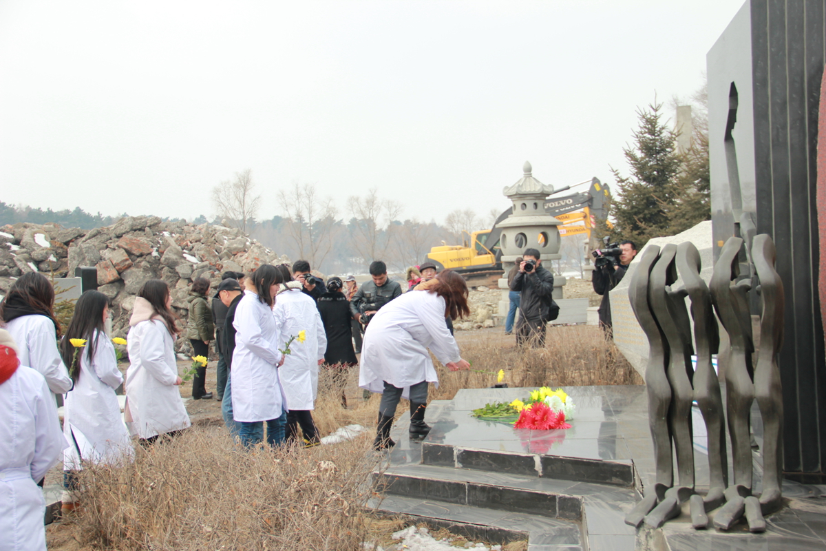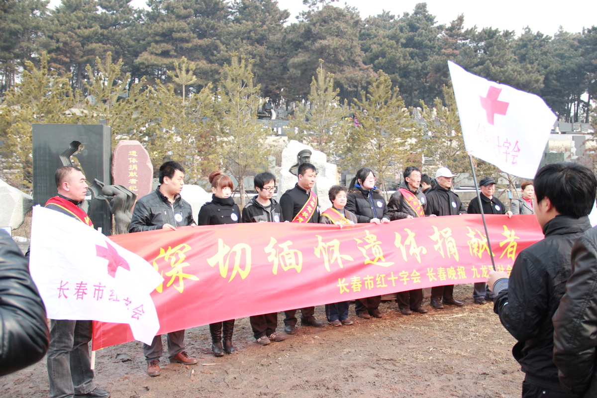 在清明节来临之际,为了缅怀遗体捐献者,弘扬人道、博爱、奉献的红十字精神,金沙2004路线js5白求恩医学院与长春市红十字会、长春晚报、九龙源社会公墓等单位一道在九龙源社会公墓纪念碑联合举办了“大爱无声,精神永存”的悼念活动。长春市红十字会常务副会长王大雷、《长春晚报》副总编刘立志、新闻部主任刘连宇、九龙源社会公墓经理张仁贵、副经理肖宝娟、白求恩医学院副院长陈霞、辅导员秦雪参加了此次活动。参加活动的还有遗体捐献志愿者、遗体捐献者亲属、九龙源社会公墓工作人员以及白求恩医学院40名学生党员。本次活动由市红十字会秘书长李锋华主持。