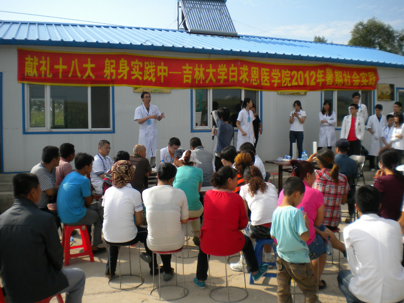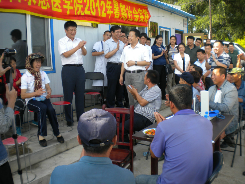 让大家欢欣鼓舞的是,金沙2004路线js5副校长兼白求恩第一医院院长王冠军和东丰县县长滕宝春等领导也来到社会实践活动现场,参与了大家的活动。在空闲的时候,王校长亲切的与乡亲们交谈,询问了新农村的生活和医疗状况。同时王校长也语重心长的告诉同学们,现在的新农村与过去的农村大不相同了。当年农村的卫生条件也是同学们想象不到的。虽然现在新农村建设已经取得了非常大的成就,但是农村依然没有改变缺医少药的现状,同时农村居民对疾病的防范意识仍然不够。通过这次活动,一方面希望两岸同学们进一步了解现在农村的现状,提高农村居民的保健意识,另一方面希望促进两岸学生交流,相互学习,取长补短。无论走到哪里,在未来的医学实践中,作为医学生要重视弱势群体的医疗卫生,关注、重视卫生知识的宣传。