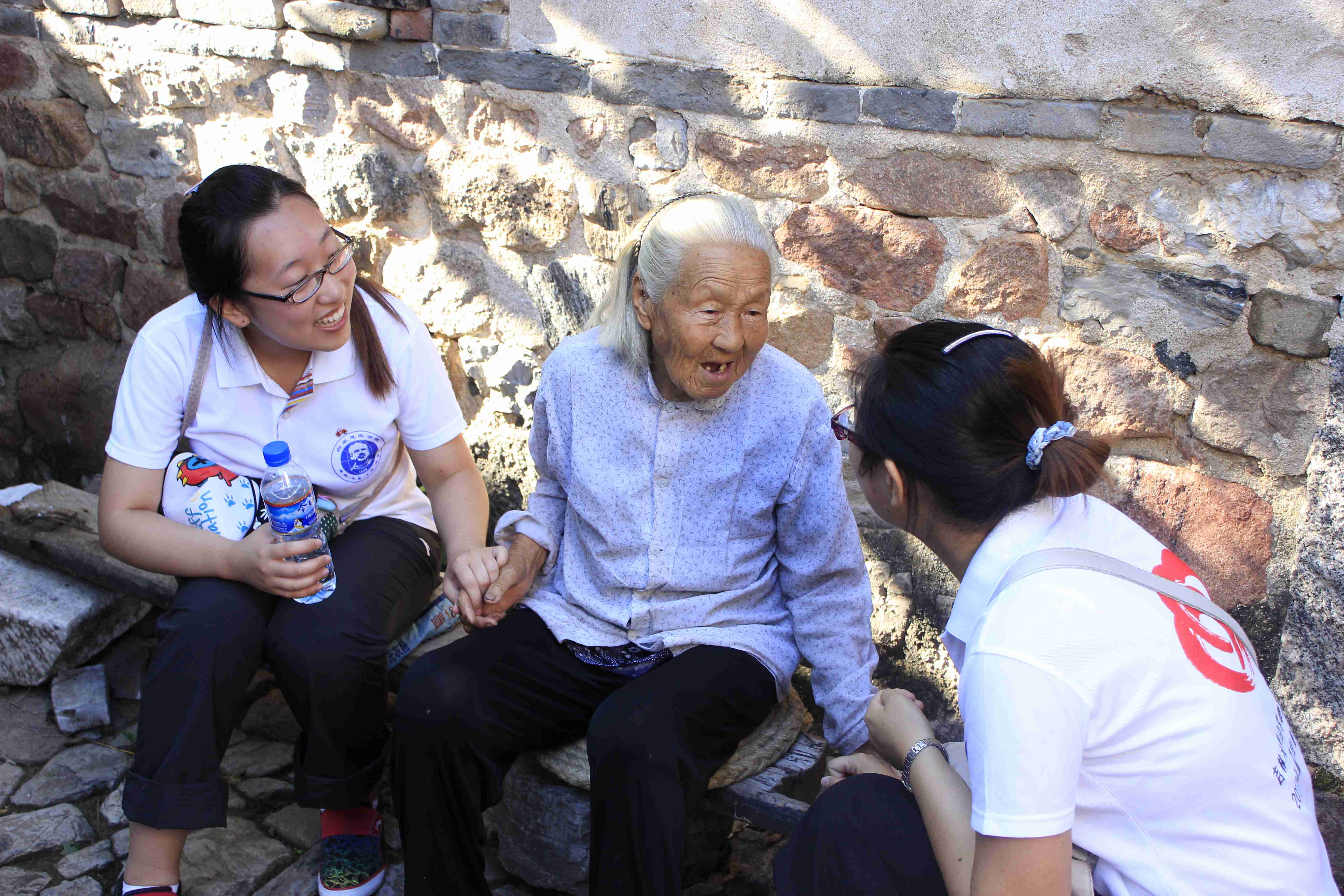 我们此行还特意拜访了一位93岁高龄的老人,她叫崔贵英,同时也是一位有着74年党龄的老党员,奶奶曾任白求恩所在部队的卫生兵,与白求恩共事是奶奶非常难忘的经历。老人家身体很健朗,话语条理也非常清晰。得知我们来自白求恩医学院,奶奶非常开心。兴致勃勃地告诉我们,白求恩在牛眼沟村的日子里,乡亲们都非常尊敬他。奶奶回忆说,有一次她得了胃病,白求恩知道后派遣勤务员送来了汤药,并亲自关心病情的发展,奶奶兴奋地告诉我们,白求恩大夫的药非常管用,喝下去胃就不疼了,而且从没犯过。奶奶还说,孩子一旦错过了最佳治疗期才被送来,白求恩非常生气,一直责怪孩子的父母为什么不早些带孩子来就诊。她说,很多别人看不好或不愿意看的病,白求恩都一视同仁,尽自己最大的努力给患者带去福音。话语之间,老人家不时地留露出对白求恩的尊敬和怀念,令我们一行队友非常感动。