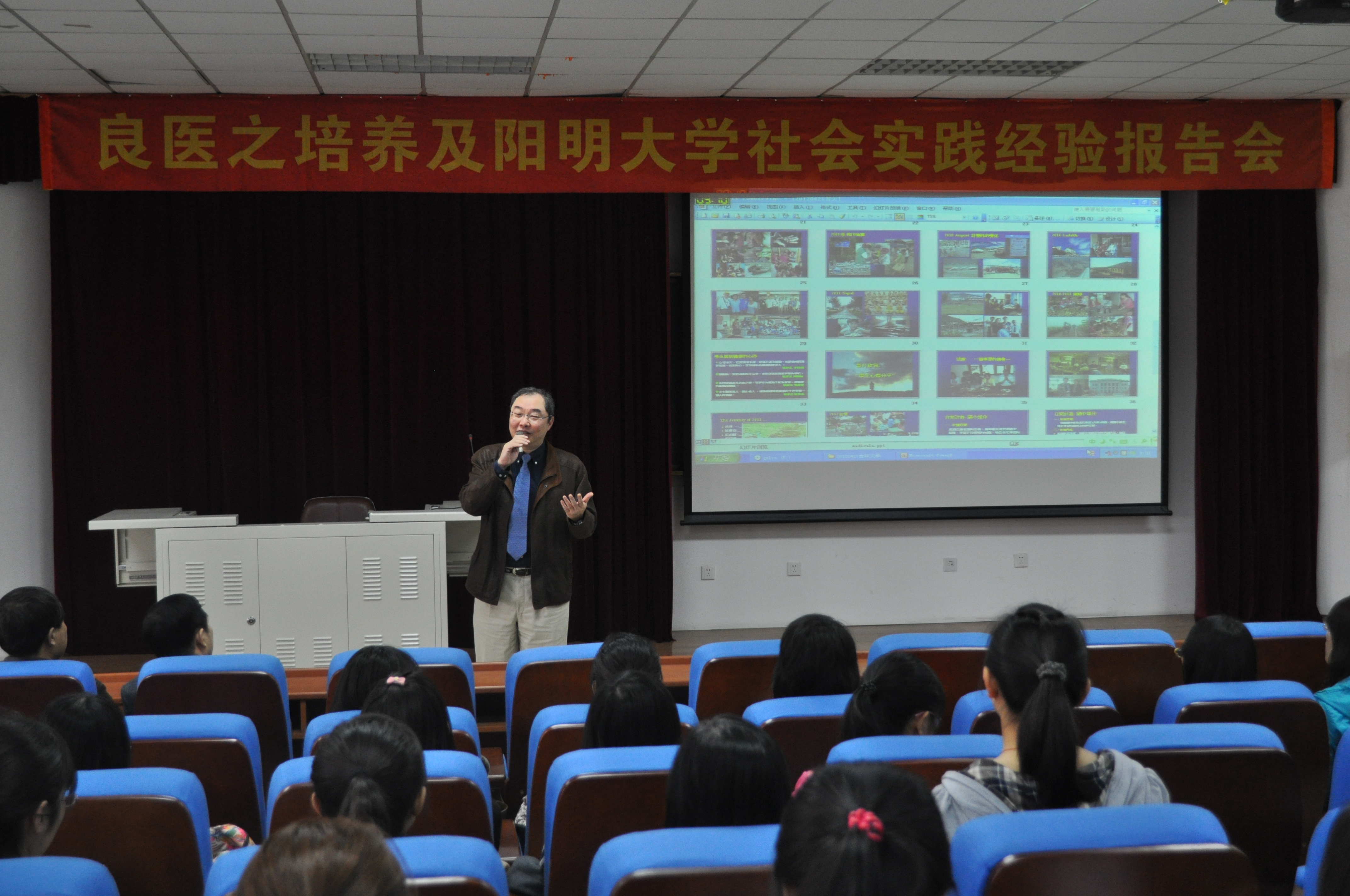 21日上午,陈维熊一行在新民校区第二教学楼2402教室举行以“良医之培养及阳明大学社会实践经验”为主题的报告会。白求恩医学院党委书记屈英和、常务副院长孙连坤等领导及部分学生代表参加了报告会。报告会由白求恩医学院党委副书记兼副院长苑锐主持。