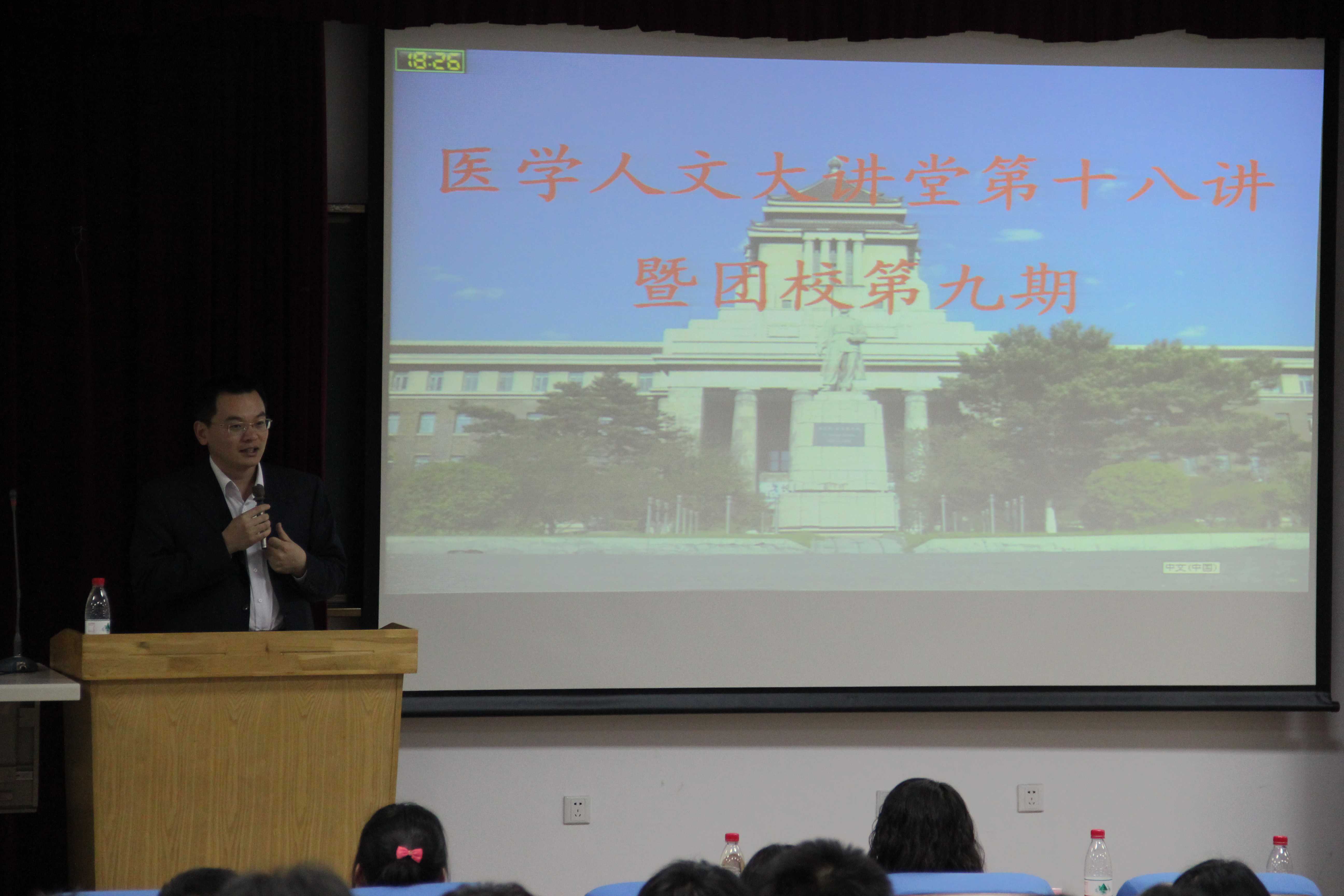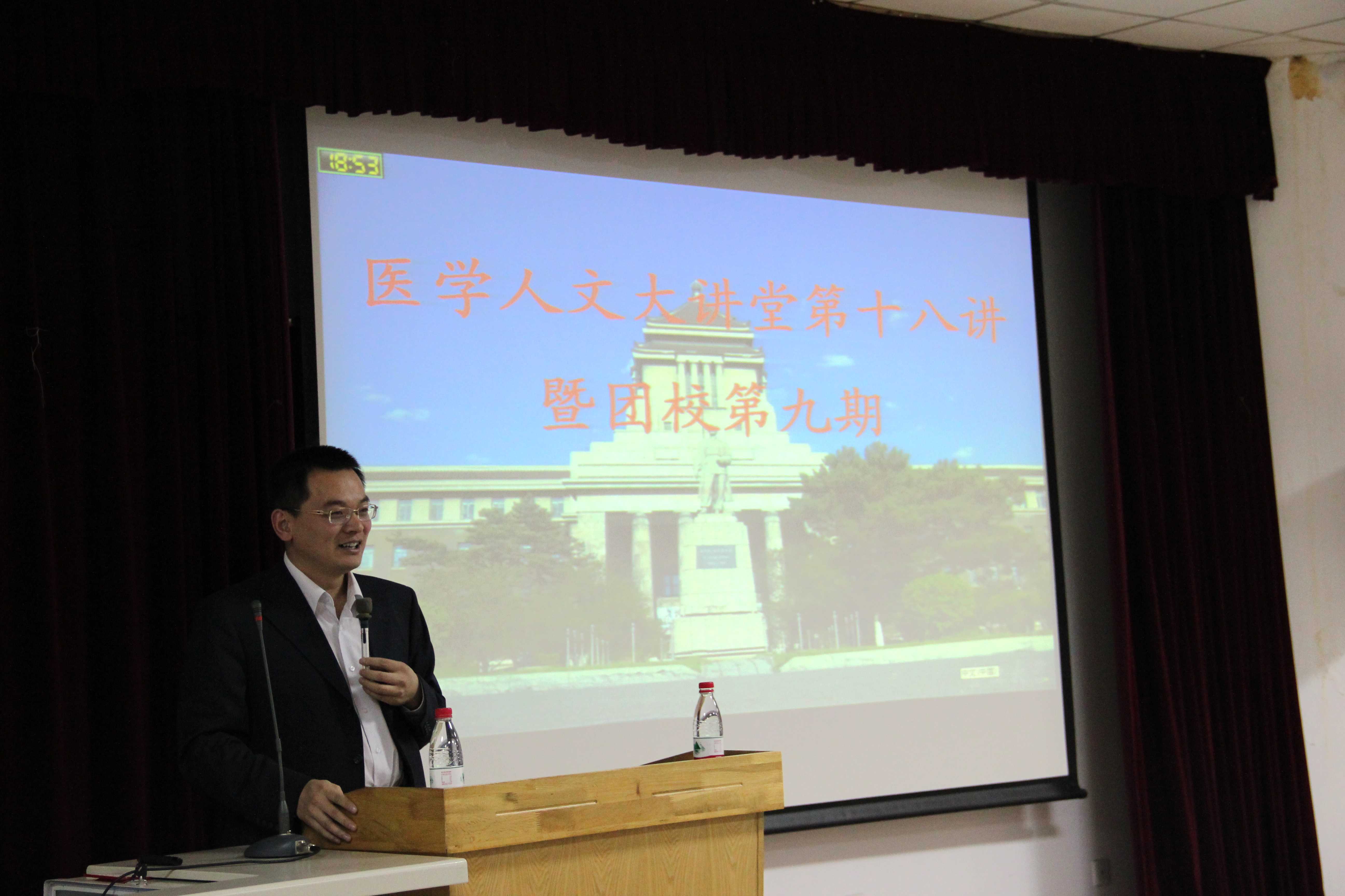 11月9日晚,白求恩医学院医学人文大讲堂第十八期团校第九讲在新民校区第二教学楼2402举行。本期的主讲嘉宾是金沙2004路线js5团委书记姚毓春,白求恩医学院党委副书记兼副院长苑锐、团委书记夏燕来、辅导员魏宇航参加了本次讲座。