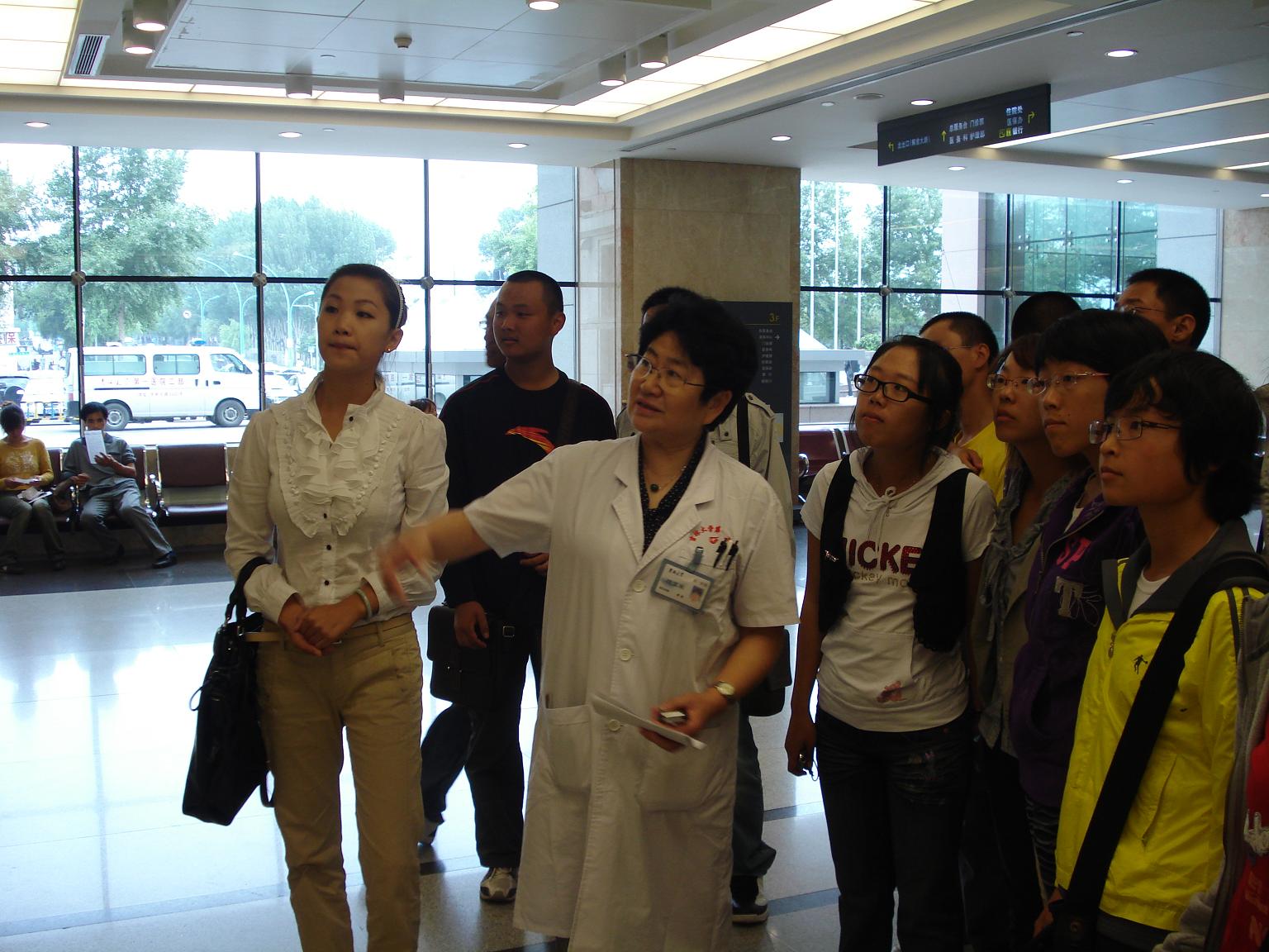 迟教授首先将同学们带到医院门诊大厅白求恩塑像前,认真地为同学们讲述了金沙2004路线js5医学事业的发展史,告诫同学们要谨记历史、不忘先辈功绩,并与全体同学合影留念。随后迟教授和同学们来到环境优雅的病人休息区,在这里同学们充分感受到了白求恩第一医院以病人为中心的良好氛围。最后迟教授带领同学们参观了检验科、内镜中心、眼科以及儿科,为同学们详细介绍了医院的情况。