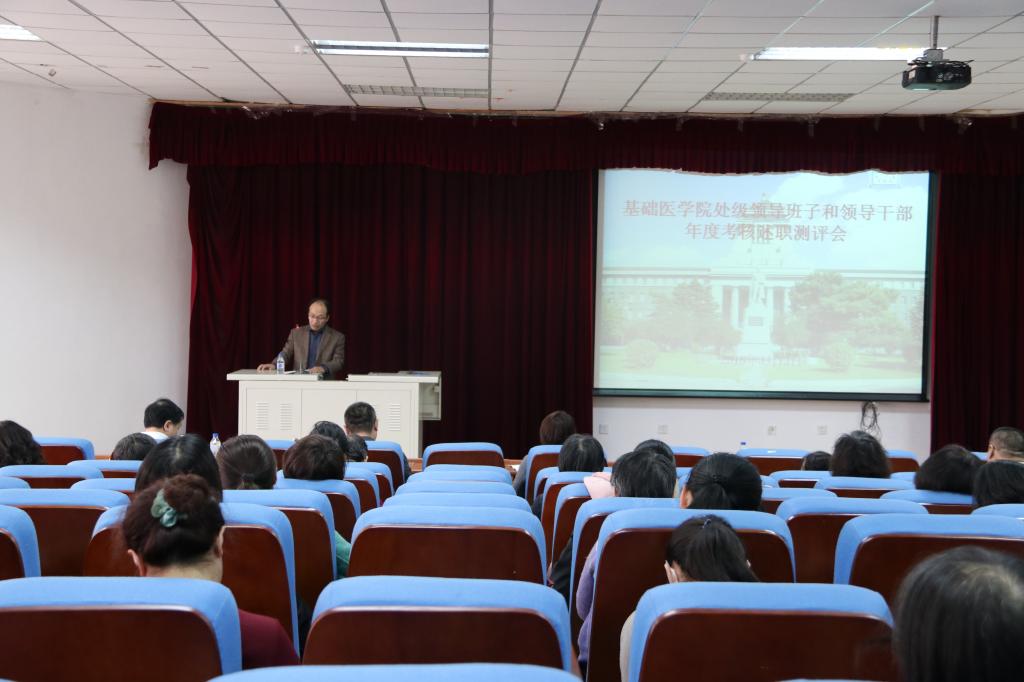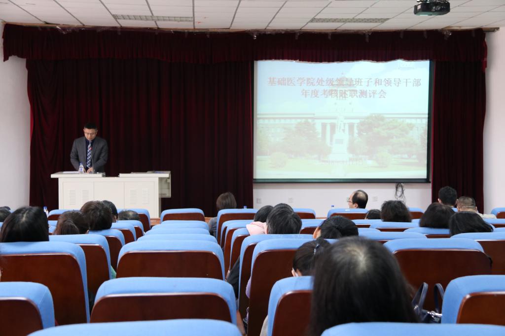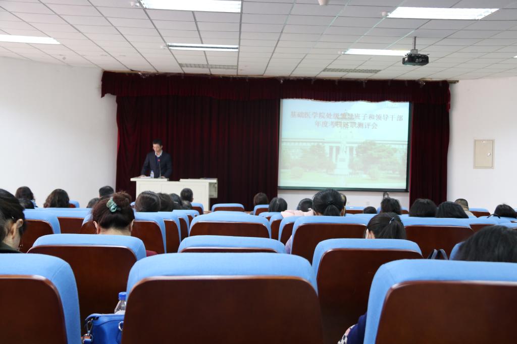 2018年3月13日下午,金沙2004路线js5党委在新民校区第二教学楼2402召开处级领导班子和领导干部年度考核述职测评会。会议由学院党委书记郑爽主持,学院全体教职工和学生代表参加了会议。
