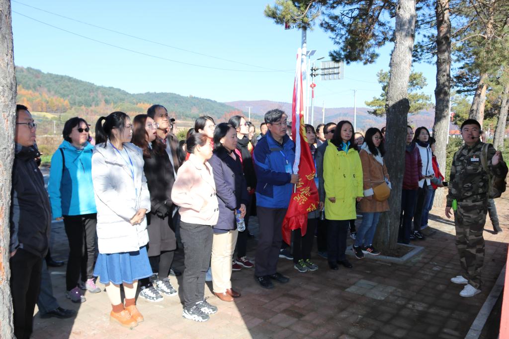 培训以“重走抗联路”党性教育的动员报告和出发仪式拉开序幕,郑爽书记宣布:“重走抗联路筑梦新时代”党性教育培训班出发 。随后,参训党员在通化市委党校教师带领下来到了杨靖宇烈士陵园,拜谒了杨靖宇将军和参观东北抗联纪念馆。秋风瑟缩,挡不住学员们踏寻抗联英雄足迹的脚步。全体党员首先在现场教学中近距离了解了杨靖宇将军当年率领抗联战士浴血拼杀的雄壮历史、体验了抗日名将王凤阁的家国情怀。白家堡子惨案让党员们了解了一段鲜为人知的抗联故事—侵略者屠戮400余位手无寸铁百姓的残暴罪行。党员们共同回顾了那段可歌可泣的抗战岁月,学习了抗联英雄向死而生、保家卫国的革命精神,是他们用忠诚铸就了永恒的丰碑。最后,培训以重温入党誓词结束。