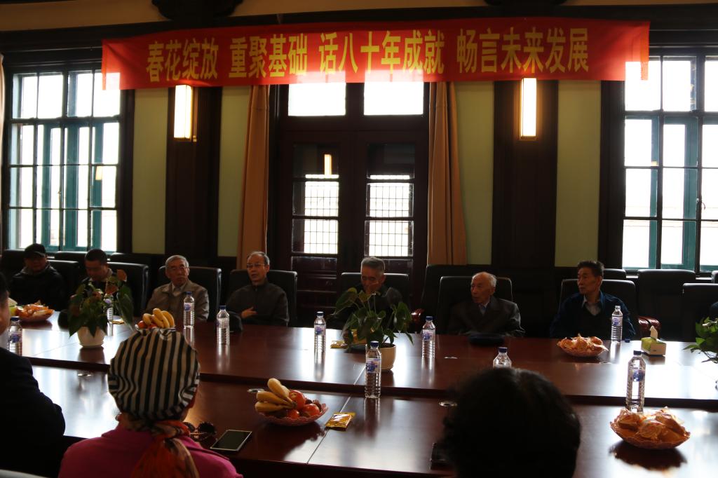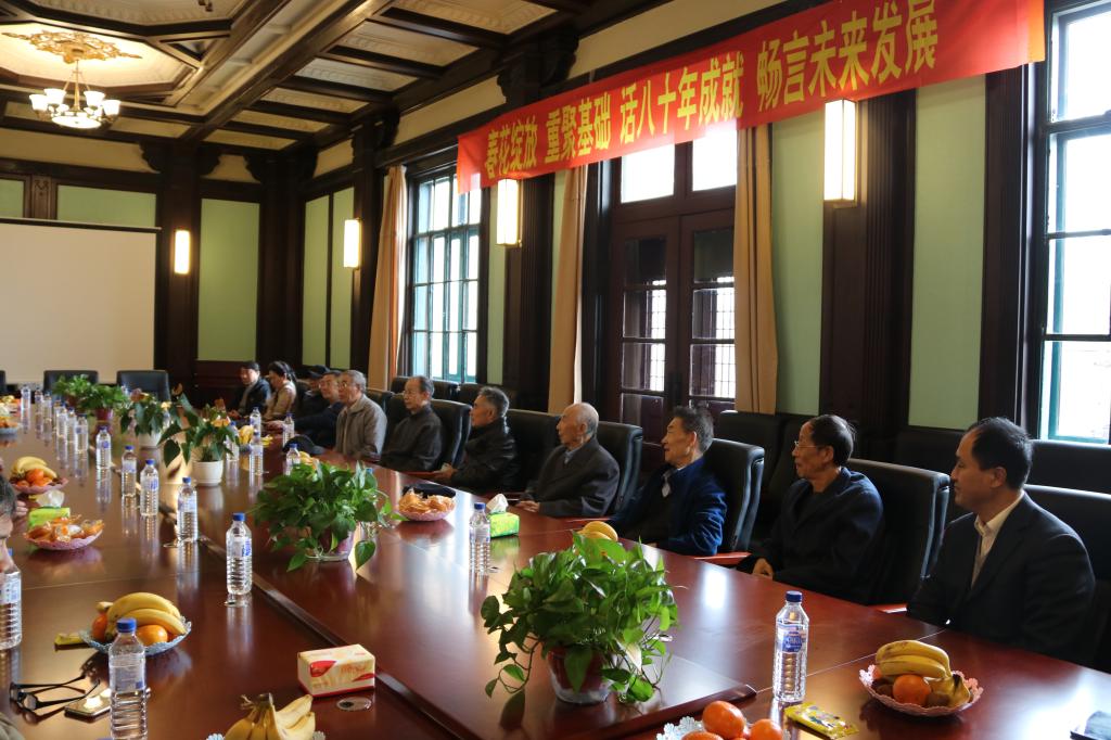 在欢快的氛围下,郑爽书记、孙连坤院长、学院班子成员、各学系主任等与30多位离退休同志在焕然一新的四楼报告厅里欢快座谈。孙连坤院长代表学院对为金沙2004路线js5不同时期发展做出了贡献的离退休同志表示感谢,汇报了学院在教学、科研、人才培养工作中取得的成绩,详细介绍了基础楼文物修缮、实验室功能恢复重建等情况,希望大家看变化,提建议,为金沙2004路线js5的发展建言献策。郑爽书记希望老同志常回家看看,继续关心、关注学院发展,共同传承好金沙2004路线js5的优良传统。原白求恩医科大学校长吴家祥为学院的发展建设提议:挖掘学院老一辈科学家的优秀事迹,传承和弘扬好白求恩精神。