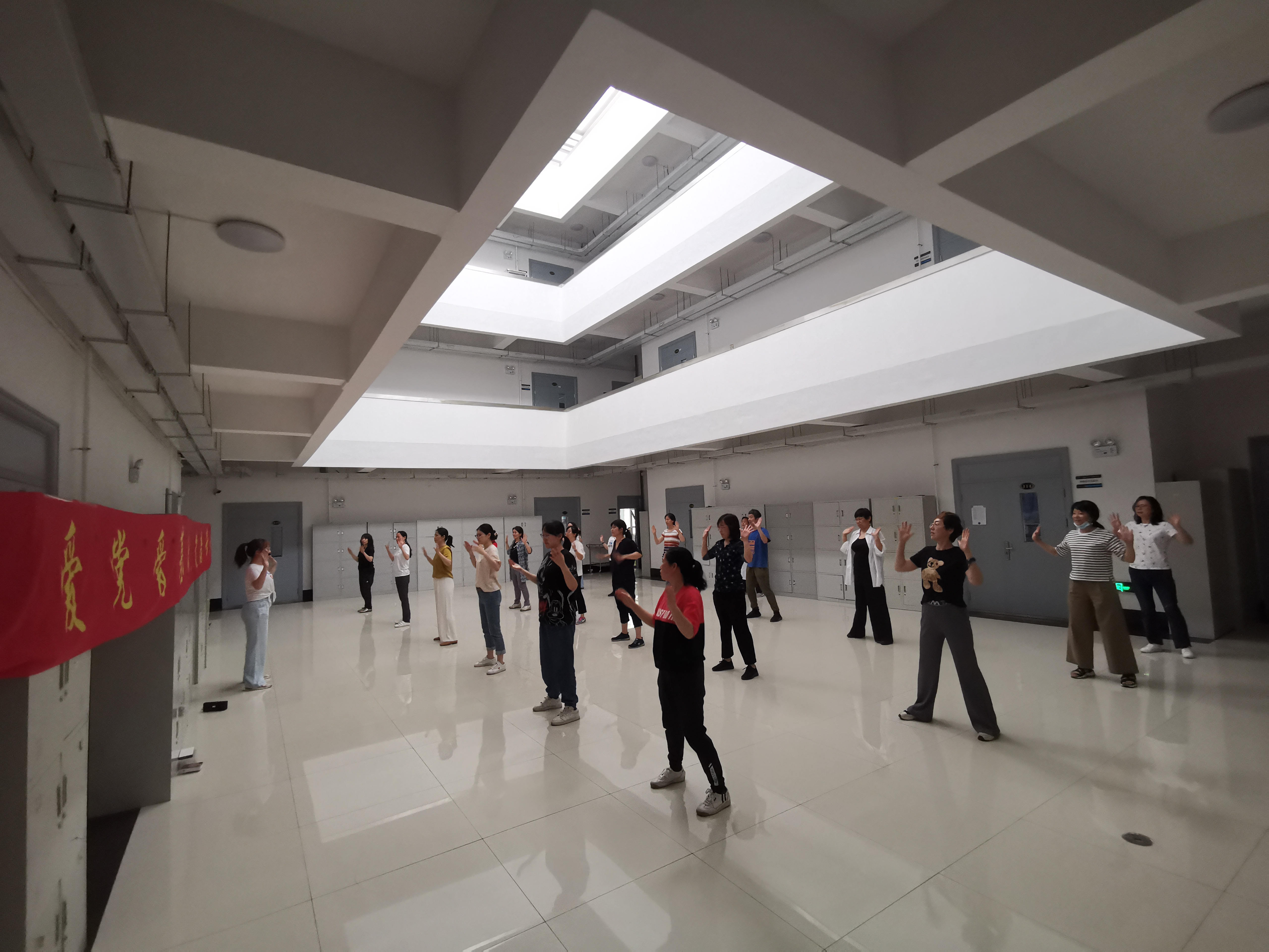 自2021年6月起,在金沙2004路线js5的领导和支持下,学院妇委会、工会以开展党史学习教育为契机,以打造“坚强阵地”营造“温暖之家”为切入点,努力形成“一家一品一特色”的工作格局,持续开展“爱党爱基础 健康常相伴”主题运动活动,每周利用中午时间在基础楼院内及大厅开展学跳健康运动操、燃脂爆汗操、拉伸运动操等体育活动,旨在强健师生体魄,抒写基础运动乐章。近一个月来,通过循序渐进的健康操运动,健身动作从易到难,从简到繁,参与活动的师生们进一步认识到全面锻炼身体的重要性,身体均衡发展和健康水平逐步提升。