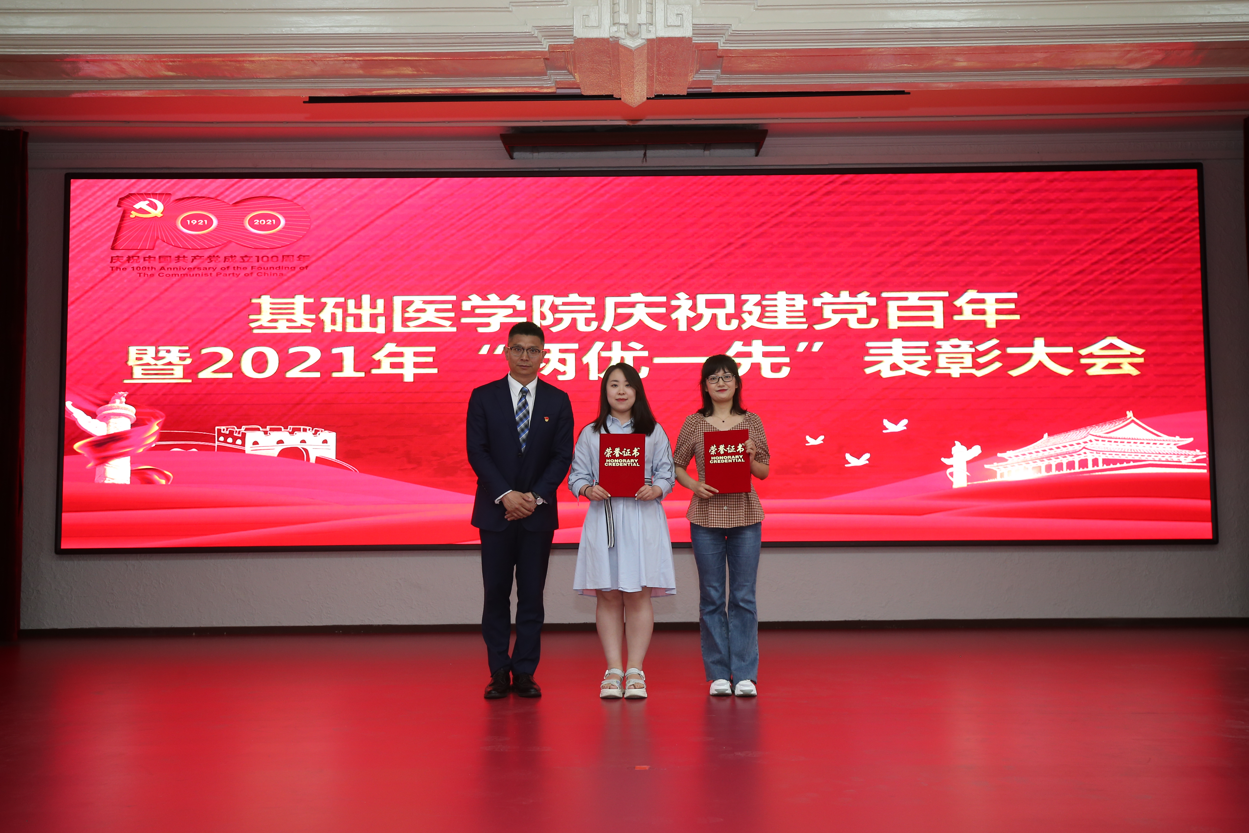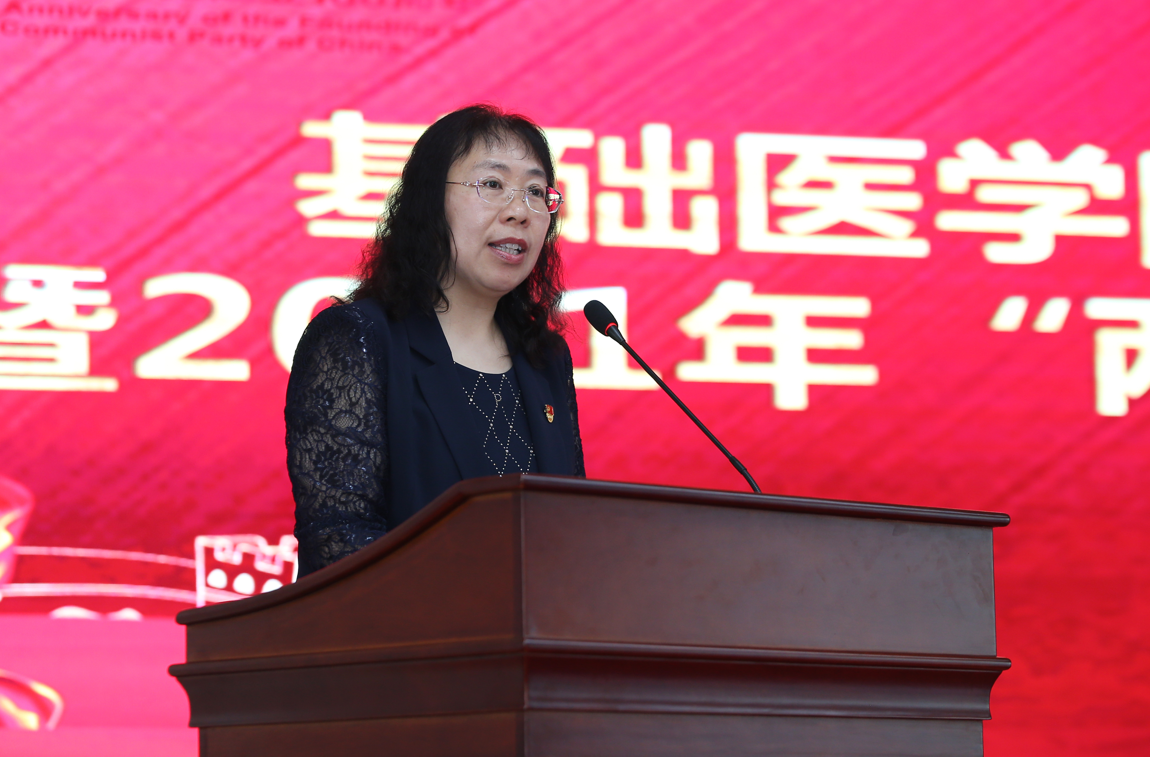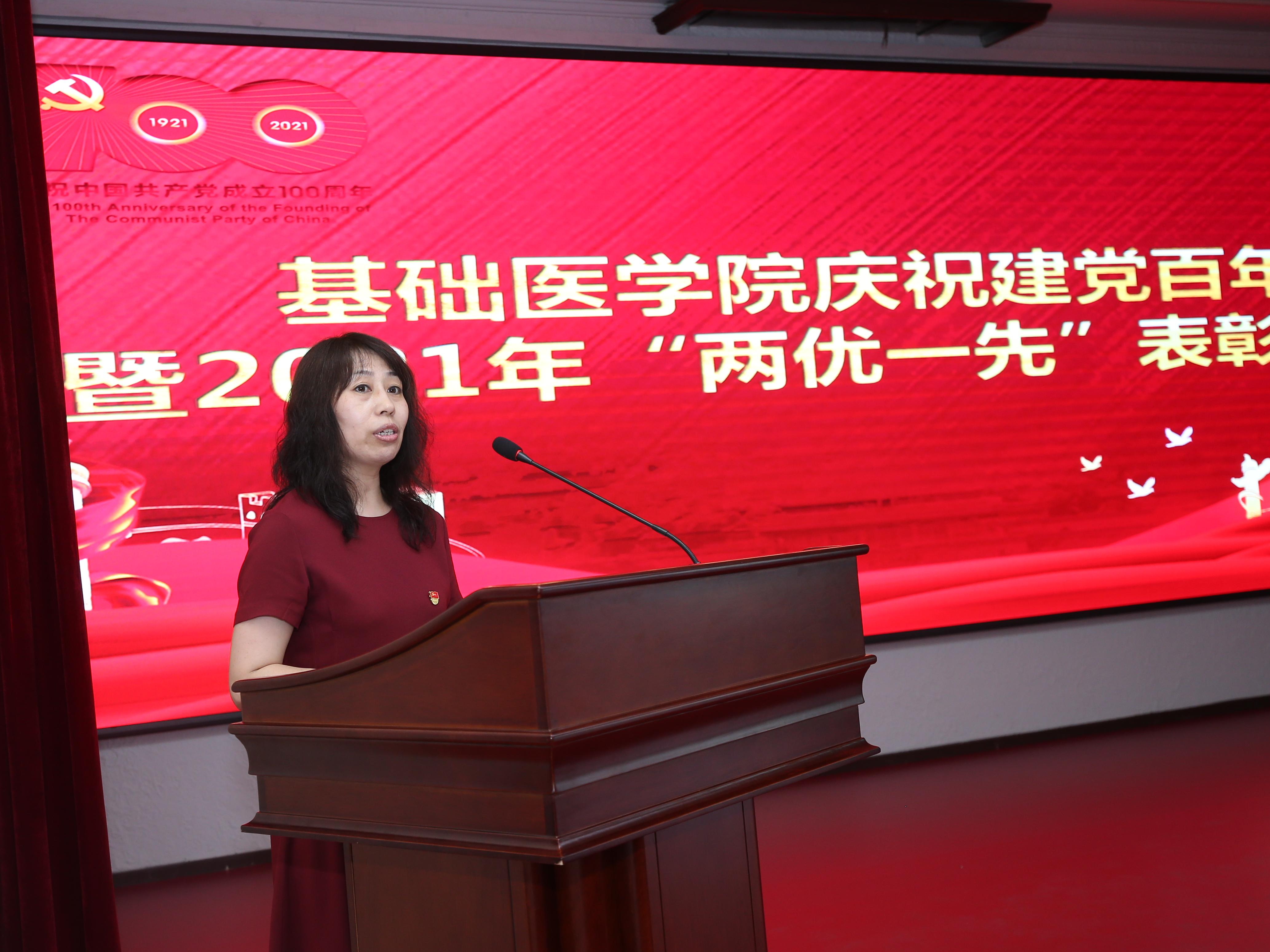 在庆祝中国共产党成立100周年,全党深入开展党史学习教育活动之际,为凝聚奋斗力量,传承学院革命传统,助推医学学科内涵建设和基础医学事业创新发展, 6月28日下午,金沙2004路线js5隆重召开庆祝建党100周年暨2021年“两优一先”表彰大会。会议由学院党委副书记、纪委书记曹国丽主持。